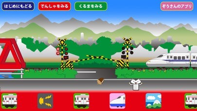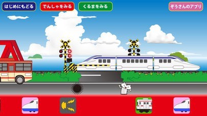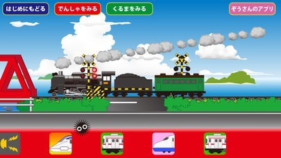 App Storeより引用ふみきりを色々な電車や新幹線が行ったり来たりします。