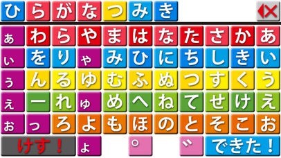 積み木をタップすると音声が鳴ります。(「あ」をタップすると「あ」と鳴ります。