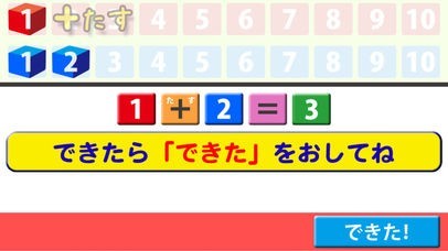 ひらがなでしりとり遊びをしたり、1~10までの数字のたしざんひきざんができる