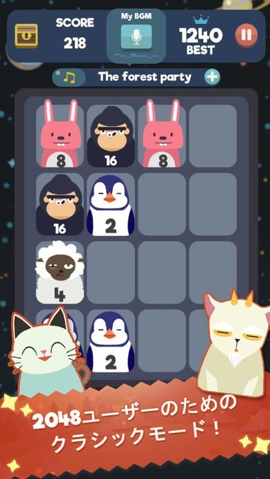 App Storeより引用Brand New 2048! Dacing with adorable animals in 2048!