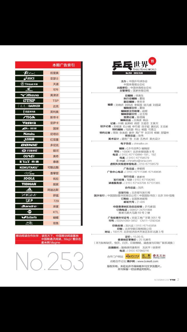 1、乒乓世界·明星版杂志为月刊,一个月一期