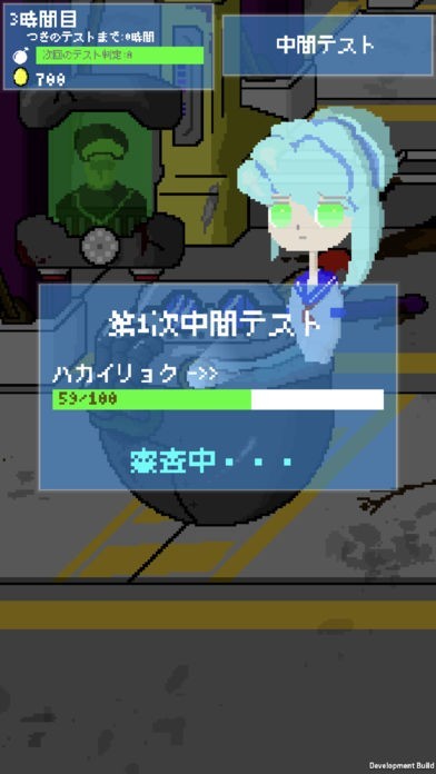 育成中は定期的にテストを受けることになります。テストに不合格になると、彼女は爆弾として投下され生命を終えます。不合格にならないように気を付け、彼女を長生きさせてください。