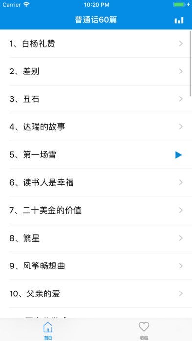 App Storeより引用普通话考试60篇依据国家《普通话水平测试实施纲要》中的“普通话水平测试试用朗读作品”制作,所有作品均保持一致。