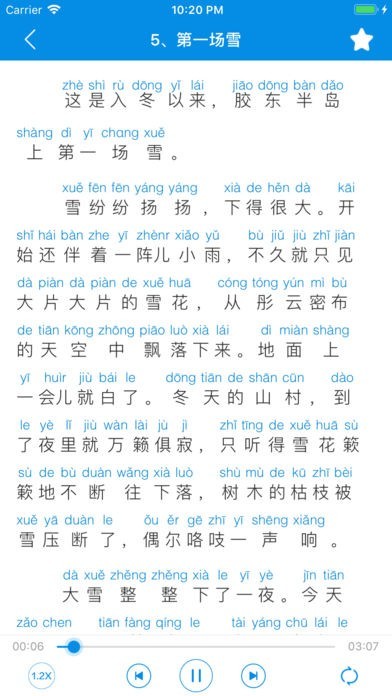 作品均配有中文及拼音,精美排版,准确练习您的普通话发音。