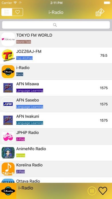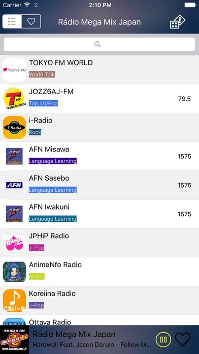 App Storeより引用日本国内の 190 以上のラジオ局の放送を楽しもう!:湘南ビーチFM, ウメダFM Be Happy!789 (FMキタ), J-Jams, Japan-a-Radio, Ghost Anime Radio, Ottava, Radio Chopin, FM軽井沢, BAN-BANラジオ, AnimeNfo, Vocaloid Radio, FM西東京 84.2, 京都三条ラジオカフェ, レディオ湘南FM, あづみ野エフエム, CREATIVE FREEDOM radio, Soulful Web Station etc.