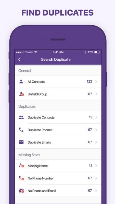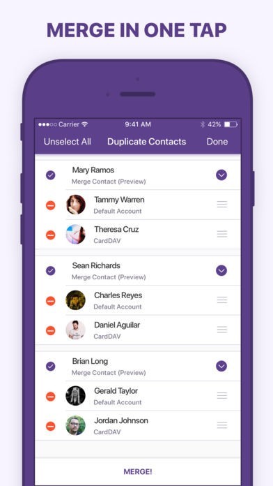 ワンタップで簡単に重複した連絡先を削除できる
