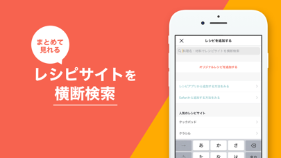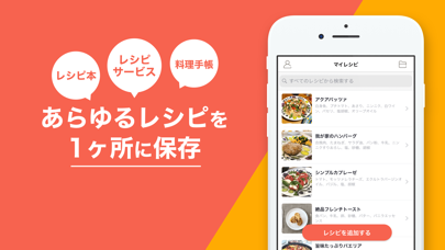 App Storeより引用国内No.1レシピ管理アプリ(※) クックスルーを使えば、レシピアプリやレシピサイトやレシピ本や料理手帳にあるあらゆるレシピを1ヶ所に保存できます。保存したレシピは、材料名で検索したり、自分好みに編集したり、フォルダで整理できたりします。また、レシピは自動でバックアップされるので、もうレシピをなくす心配はありません。