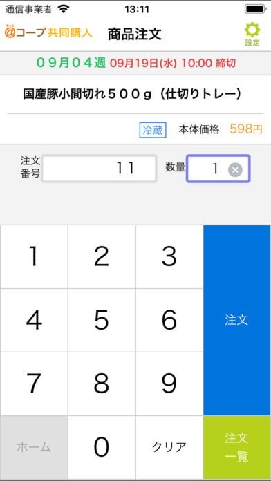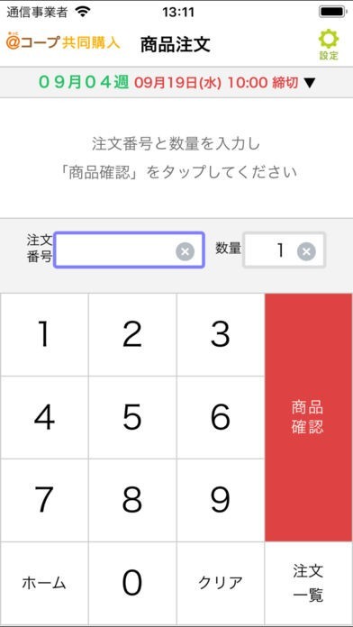 あっとコープ共同購入番号注文アプリのスクリーンショット
