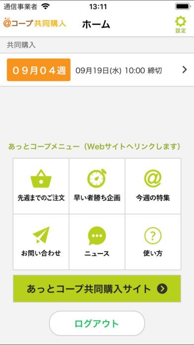 コープのWEBページへもすぐに飛べるようになっており、今週の特集や早いもの企画などもすぐに見られるようになっています。先週までの注文も一目で分かるので、役立ちます。