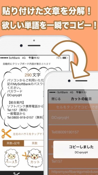 コピペカットを使えばメールでも何でも、テキストの中の記号・英語・数字を識別して簡単に切り取ることができます。もうコピペする範囲を気にしたりする必要がないので、作業が効率化します。