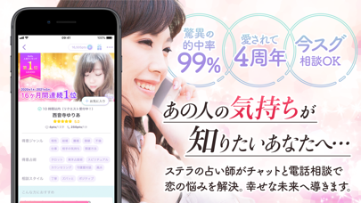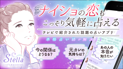 「ステラ - 当たる人気占い師にチャット、電話で相談占いアプリ」は、スマートフォンを使って人気占い師による占いを受けることができるアプリになります。メールアドレスや電話番号などの個人情報を登録することなく、すぐに利用することができるようになっていて、チャットを使った相談をすることが可能となっています。