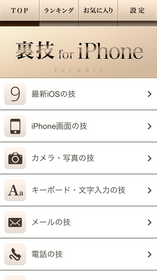 iPhoneユーザーの方で機能を使いこなせている自信がないという方にピッタリのアプリがiPhoneの裏技です。ランキング形式で人気の裏技をチェックすることができます。また、気に入った裏技がみつかったらお気に入り登録をすることができるので後からもう一度裏技をチェックしたいという場合に役立ちます。例えば、iPhoneのカメラ機能を使ってより魅力的な写真を撮りたい場合に何か良い方法がないか調べるためのツールとしても使うことができます。裏技はカテゴリごとに分類されているので、自分の気になった裏技を集中的に調べたい時にも使いやすくなっています。