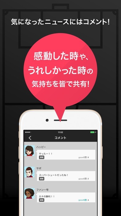サッカーニュースに特化したアプリになっています。一日3回ニュースが配信される仕組みになっており、試合速報がもちろんのこと、サッカーに関するコラムを読むこともできます。気になったニュースにはコメントを書きこめるようになっているので、ファン同士で思いを共有することも可能です。サッカー好きにはたまらない内容になっています。