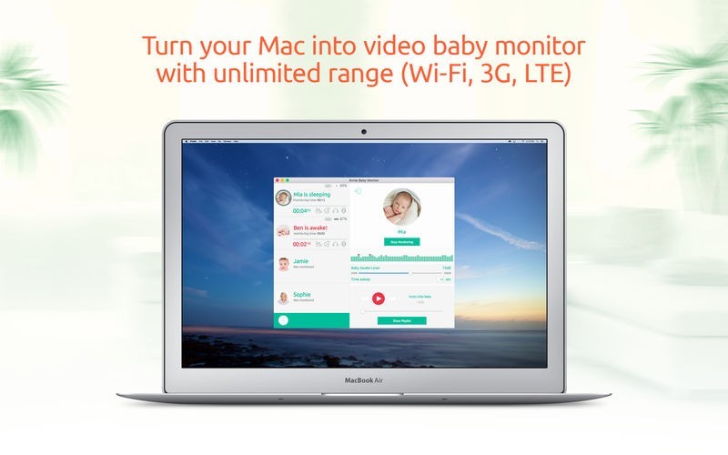 App Storeより引用驚くほど信頼度が高いベービーモニター、WiFi、3GまたはLTE(3G+)から操作できる到達範囲無制限最新機能はApple Watch対応と高品質ビデオです。親デバイス数は無制限で最大4人の子供を監視できます。アニーベービーモニターなら二台のApple iOSデバイスが最適なベービーシッターに早変わりします。