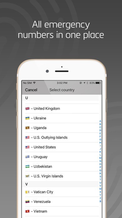App Storeより引用緊急電話番号は、あなたの情報と場所で SMS を送信することができます緊急警告アプリです。3 つの緊急連絡先を設定し、あなたはボタンを押すだけで危険を知らせます。