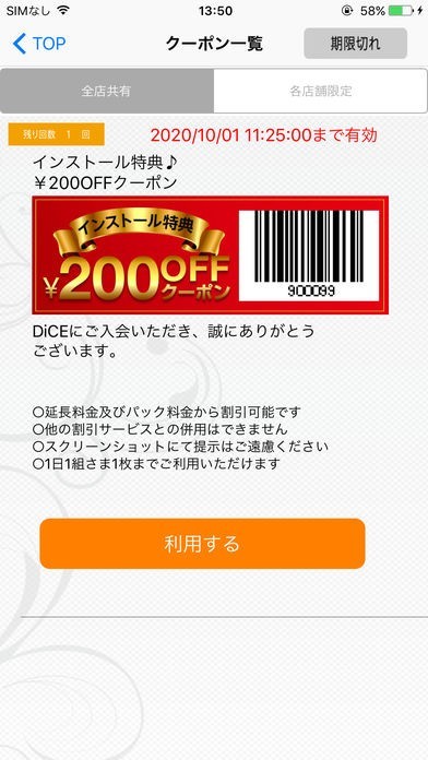 自動で貯まるスタンプを五つ貯めると好きな割引サービスと交換することができます。クーポン機能はクーポンの画面を表示して好きなクーポンを選んで「利用する」を選ぶと簡単に使えます。