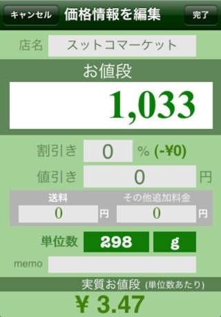 店名や商品名を後から編集出来る!価格だけサッと入力しておきたい場合にも重宝!
