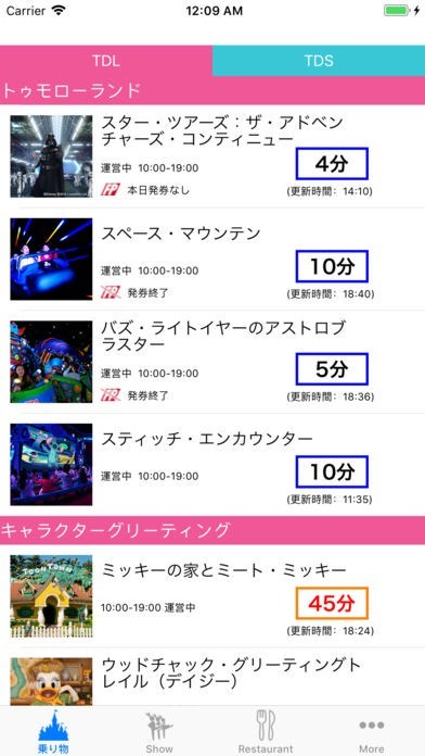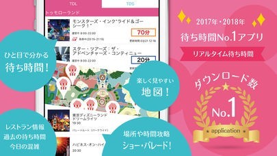 「待ち時間 for TDL TDS」は東京ディズニーランドやディズニーシーのアトラクションに乗るまでの待ち時間を表示してくれるアプリです。特に繁忙期になってくると人気のものは1時間以上の待ちが当たり前になってくるため、たくさん乗り物にのりたければ予め計画を立てておくことが必須になります。ランドやシーの残りの待ち時間が見られる他、ショーのイベント情報、レストラン・ショップのマップもあるのでガイドの役割も果たしてくれるアプリです。ファストパスの時間をアラーム通知で知らせてくれる機能もあり、これ一つあれば快適に一日を過ごすことができるでしょう。