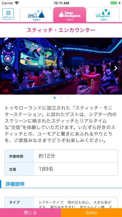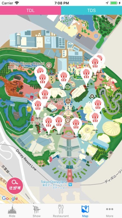 このアプリは、千葉県浦安市にあるテーマパークで、東京ディズニーランドと東京ディズニーシーのふたつを行ったり来たりする際にガイドブックを開く手間を省けるアプリです。