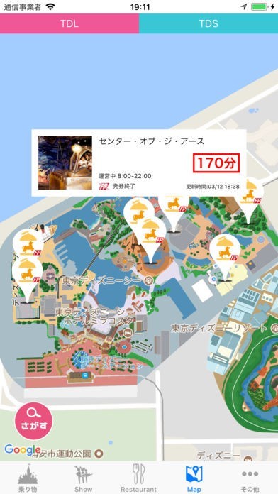 東京ディズニーランドとシーの待ち時間が分かるアプリ、施設の場所などガイドも充実!