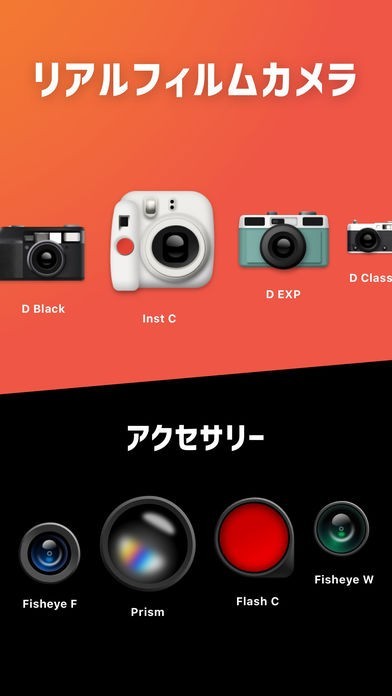 あらかじめアクセサリーとして、様々なカメラやレンズが用意されています。ポラロイドカメラ風の撮影や魚眼レンズ調の作品作りが誰でも楽しめます。多機能さがウリの加工アプリでとことん遊びましょう。