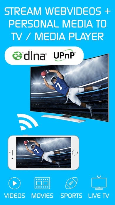 Browse the web and stream your favorite webvideo or online TV show on a DLNA player like Samsung TV, LG TV, Sony TV, Philips TV, Toshiba TV, Panasonic TV, Xbox 360, Xbox One, EZCast, WD TV, Kodi (XBMC), SONOS and many other devices that use DLNA / UPnP / AllShare. Please try the free app version to check if your specific DLNA player is supported.