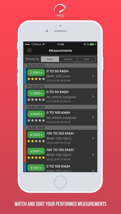 ‣ Sort performed measurements by date, vehicle or type