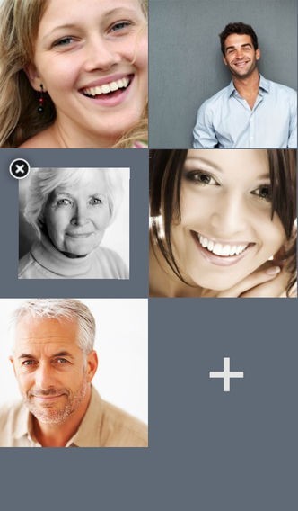 使用する写真はアルバムから好きなものを選ぶことができ、写真の代わりにモノトーンカラーの背景に名前を表示させることもできます。写真は正方形のサイズでタイル状に並べられるので一覧性も十分高いです。