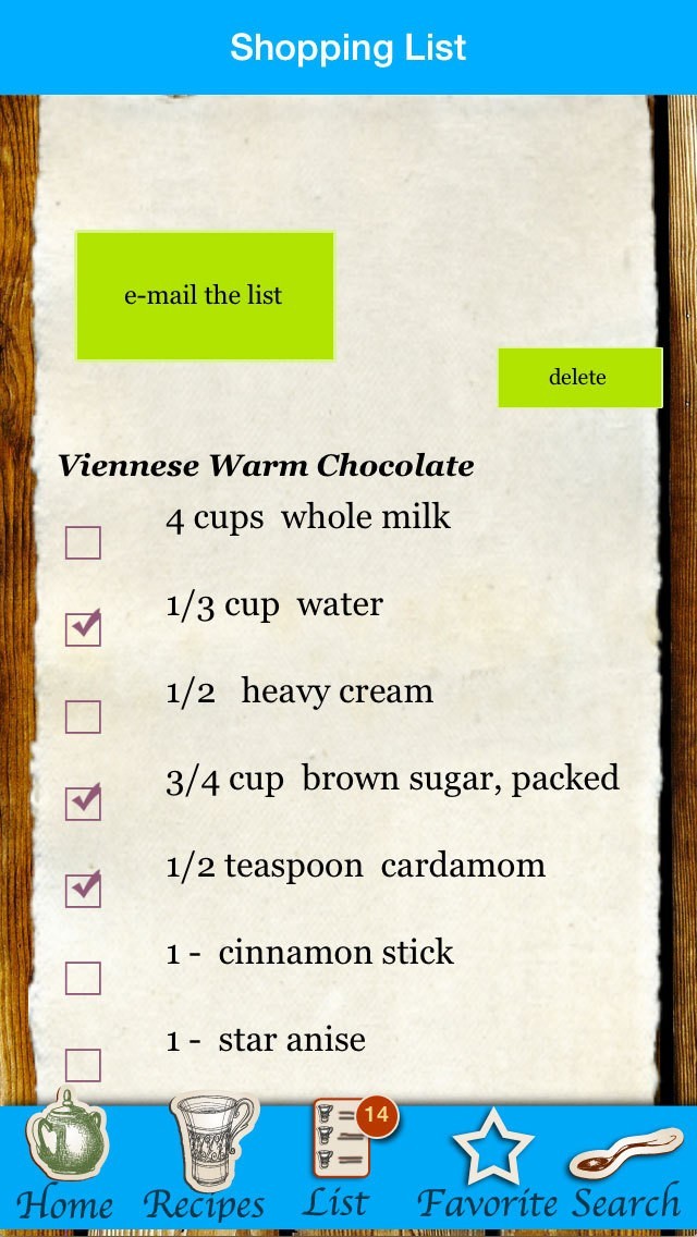 • Shopping list