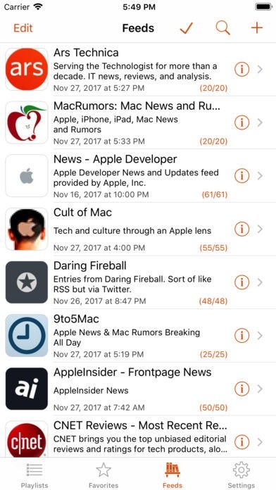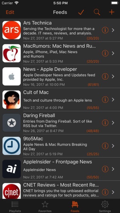 「Legi (RSS Feed Reader)」は、スマートフォンで高機能RSSリーダーを利用することができるアプリとなっていてスマートプレイリストで独自に記事を整理することができます。