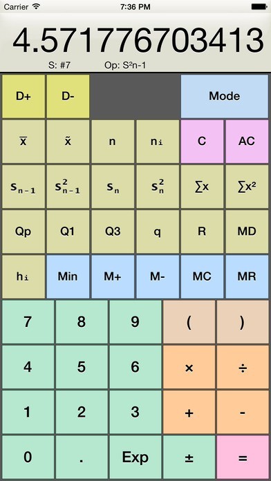 統計モードで平均値、中央値、分散、標準偏差などを計算できる