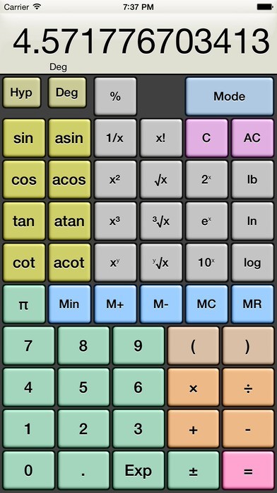 「Kalkulilo (scientific calculator)」は、いくつかの異なるモードを提供してくれる電卓アプリです。「Kalkulilo (scientific calculator)」では、通常の計算ができるモード、論理演算が出来るモード、平均値、中央値、分散、標準偏差などを計算できる統計モード、三角関数を計算できる三角法モードなどさまざまなモードが利用できます。さらに、「Kalkulilo (scientific calculator)」は、16進数の計算もできます。