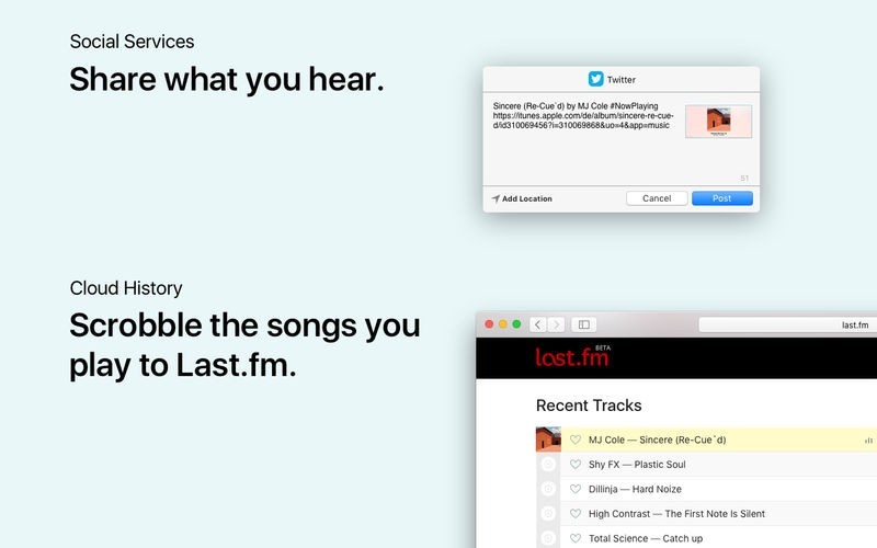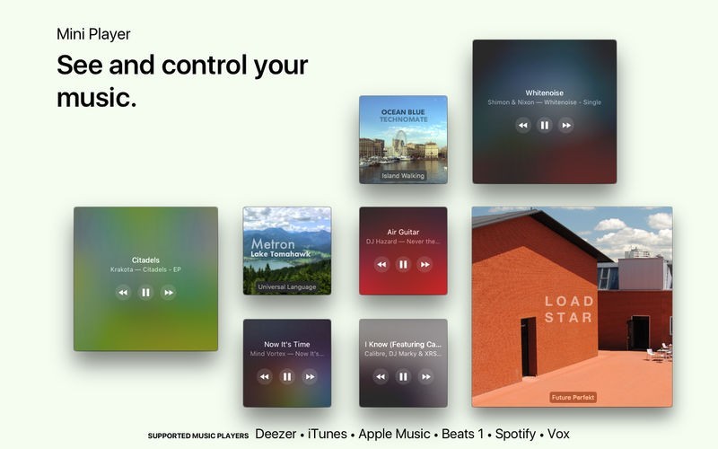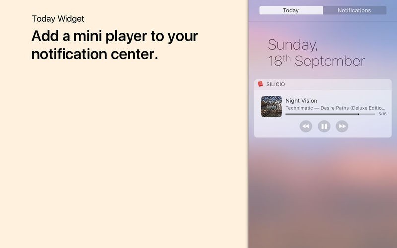 Silicio brings the album cover and song information right to your desktop. Control your music player without ever leaving your current app. All combined with support for many music players and their streaming services.