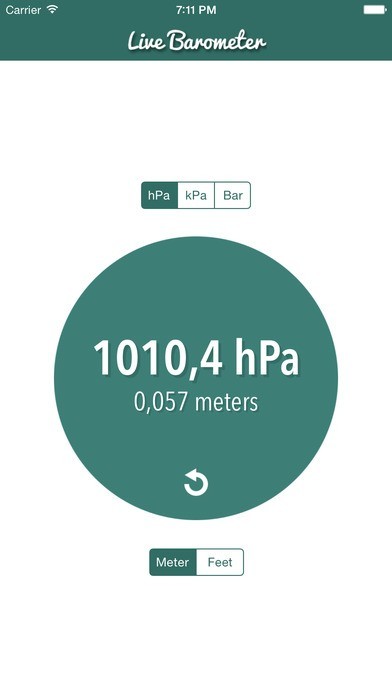 iPhone6以降に搭載されている気圧感知機能を使った天気アプリになっています。アプリを起動してstartボタンをタップすることですぐに現在の気圧が表示されます。ウィジェット機能を使えば通知画面に常駐させることも可能です。