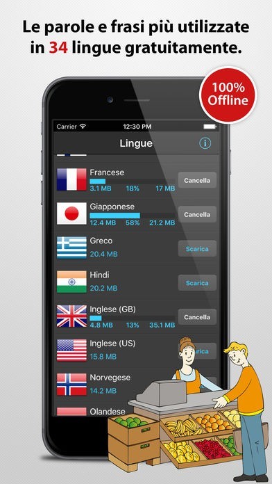 All’interno dell’app sono disponibili versioni avanzate delle frasi idiomatiche, con oltre 2.200 parole e frasi illustrate. È anche possibile acquistare il pacchetto con tutte le 34 lingue di destinazione.