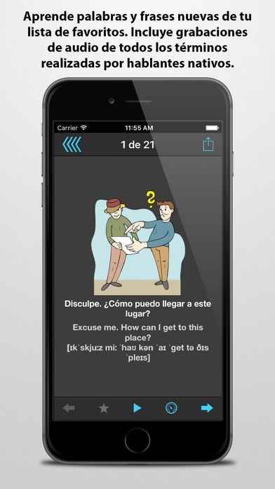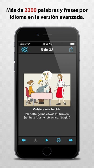 300におよぶスペイン語の慣用表現や単語を一覧から選択し、それを33の言語に翻訳し読上げてくれます。全ての表現にはイラストが付いていますから、適切な表現をすぐに選ぶことができるのもポイント。ユーザーインターフェースは全てスペイン語で表記されており、スペイン語圏の方には大変使いやすいデザインになっています。