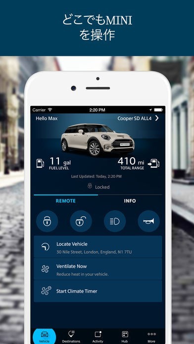スマホでロックやアンロック、エアコンのオンオフなどMINIを操作できるようになります。カレンダーアプリやや音楽アプリなど、他のアプリと連携して操作することも可能です。