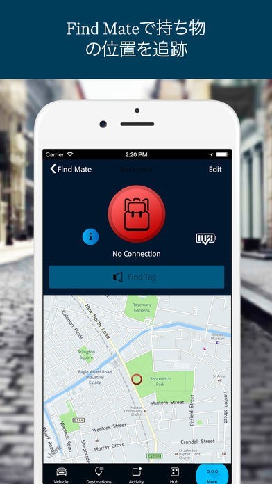 目的地を入力すると現在地からの最適なルートを表示してくれ、走行時間や燃費なども確認することができます。近くにある駐車場も検索できるので、スムーズに移動できます。