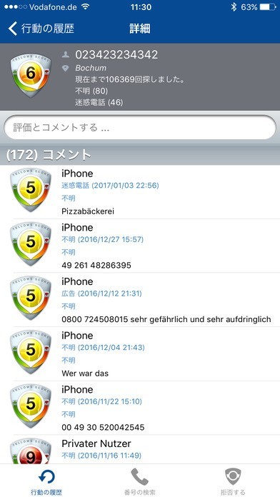 そうすると電話番号の明細のページに達すはずです。番号によりますが、そこで番号の発信源や持ち主、電話した理由及び他のユーザーのコメントをご覧になれます。役に立つ情報がないこともあると思いますが、そのときはどうぞご自身でコメントを書いて他のユーザーの方達と共有してください。簡単な作業で番号に対する評価を入力できるようになってきます。