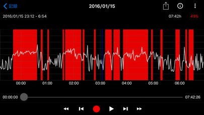 枕元にスマホを置いて寝る前にタップするだけで、寝息やイビキを録音で切ります。音声は再生できますし、イビキをかいていた時間帯をグラフで表示できるので、その部分のみを聞くことも可能です。