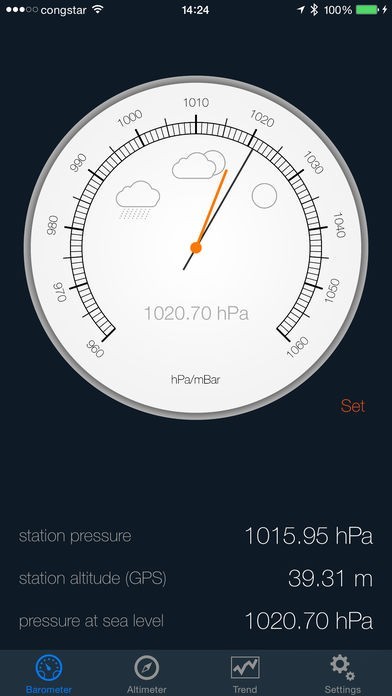 Barometer & Altimeter for iPhone/iPadはiPhoneなどを気圧計と高度計として使える天気アプリです。GPSによって現在地の高度特気圧を取得することができ、気圧の単位はヘクトパスカルなど8種類から選ぶことができ、高度はフィートとメートルから表示が選べます。温度の表示も可能となっています。