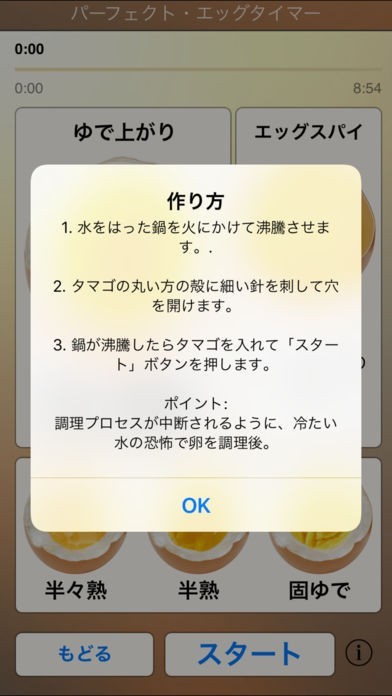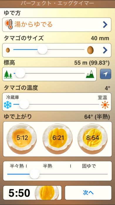 「パーフェクト・エッグタイマー」は、完璧なゆで卵を作るためのサポートをしてくれるタイマーアプリです。半熟から固ゆでまで、ゆで具合を自由に決めて設定可能。標高取得機能などがサポートしてくれます。