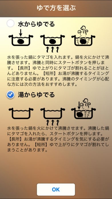 ゆで方や卵のサイズも選択可能!細かな調整で理想のゆで卵が完成!