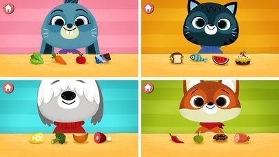 動物のお友達を選んで野菜や果物、スイーツをあげ、歯がだんだん汚れていく様子を見てみましょう。
