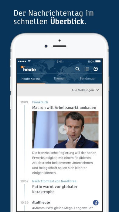 Der Newsticker „heute Xpress“ bietet den schnellen Überblick über die aktuelle Nachrichtenlage. Hier finden Sie Kurzmeldungen, kurze Videos und Aktuelles aus den Social Media-Kanälen. Unter „Themen“ sehen Sie die aktuellen News und Meldungen des Tages hintergründig aufbereitet mit vielen Videos und Livestreams von besonderen Ereignissen. Folgen Sie mit dem Sternchensymbol Themen, die Sie besonders interessieren.