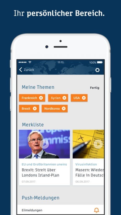 • Push-Benachrichtigungen für Eilmeldungen und wichtige Themen