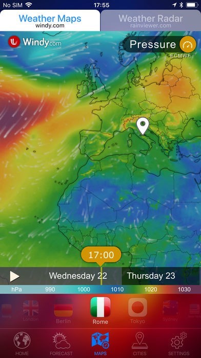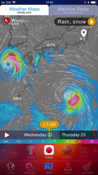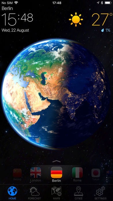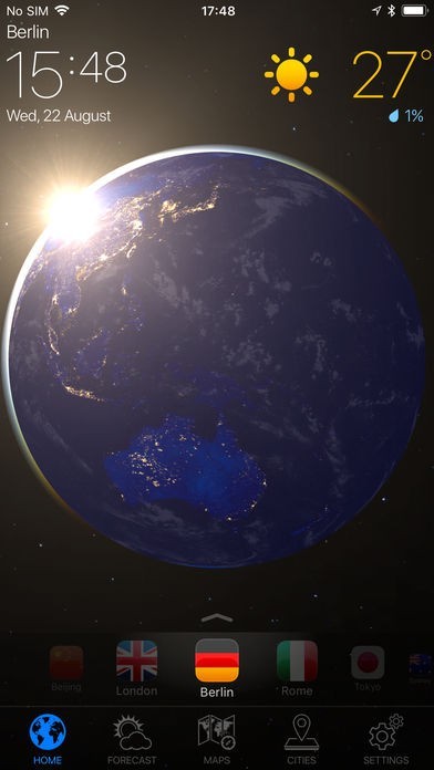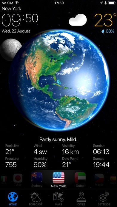 地球儀型の3D地図から各地の天気が素早くチェック出来るようになっています。気温や風速等のデータを表示させる事が可能で、気象の変化をグラフで確認出来るのも利点です。