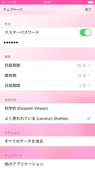 女性一人一人生理周期が異なるように、本アプリを最大限に活用するためには個人のデータを入力してカスタマイズすることが肝要です。黄体期や月経期間も登録しておけます。