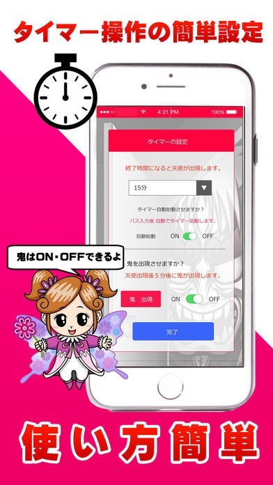 タイマー時間になったら「天使」出てきてそれでもやめないと5分後に。。。。。。。。。