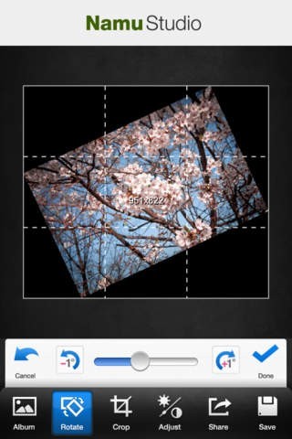 角度や距離を間違えて撮影してしまっても大丈夫。このアプリがあれば拡大、回転して切り取りができる
